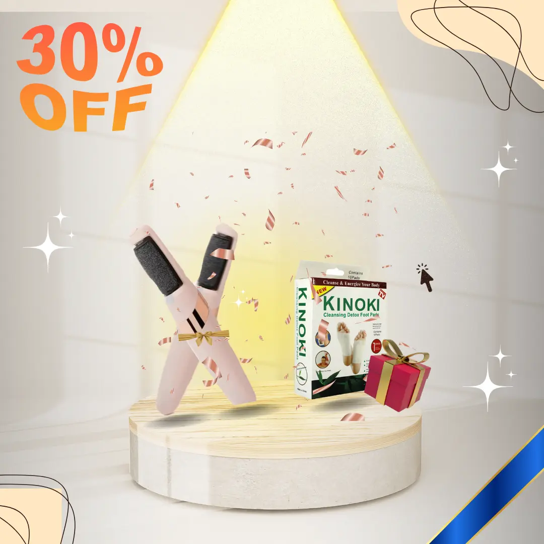 Spa completo para tus pies: removedor de callos + parches desintoxicantes para bienestar total.